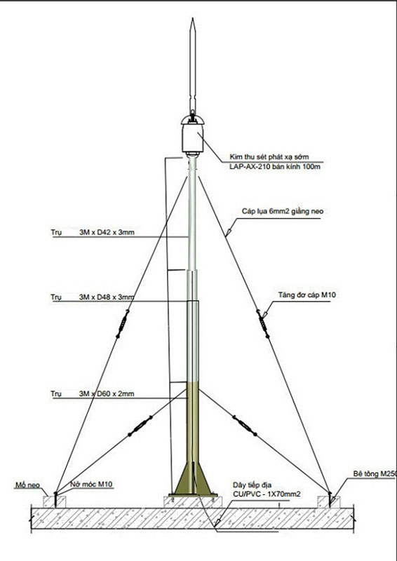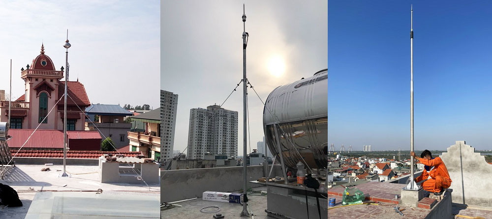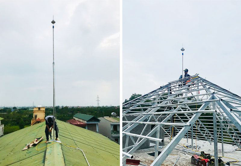 - Thi công cột chống sét (cột thu lôi)